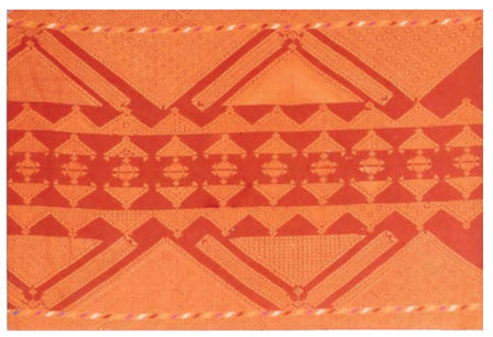 The golden coloured cotton embroidered in triangular patterns which are said to be symbolic of the union of two